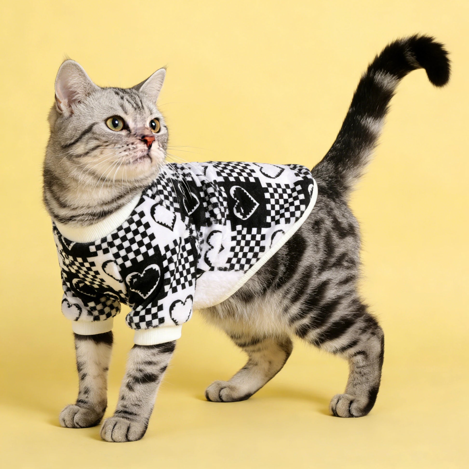 Dress your cat or dog in style this spring and summer! This lightweight, breathable short-sleeve shirt features cute heart and checkerboard patterns.